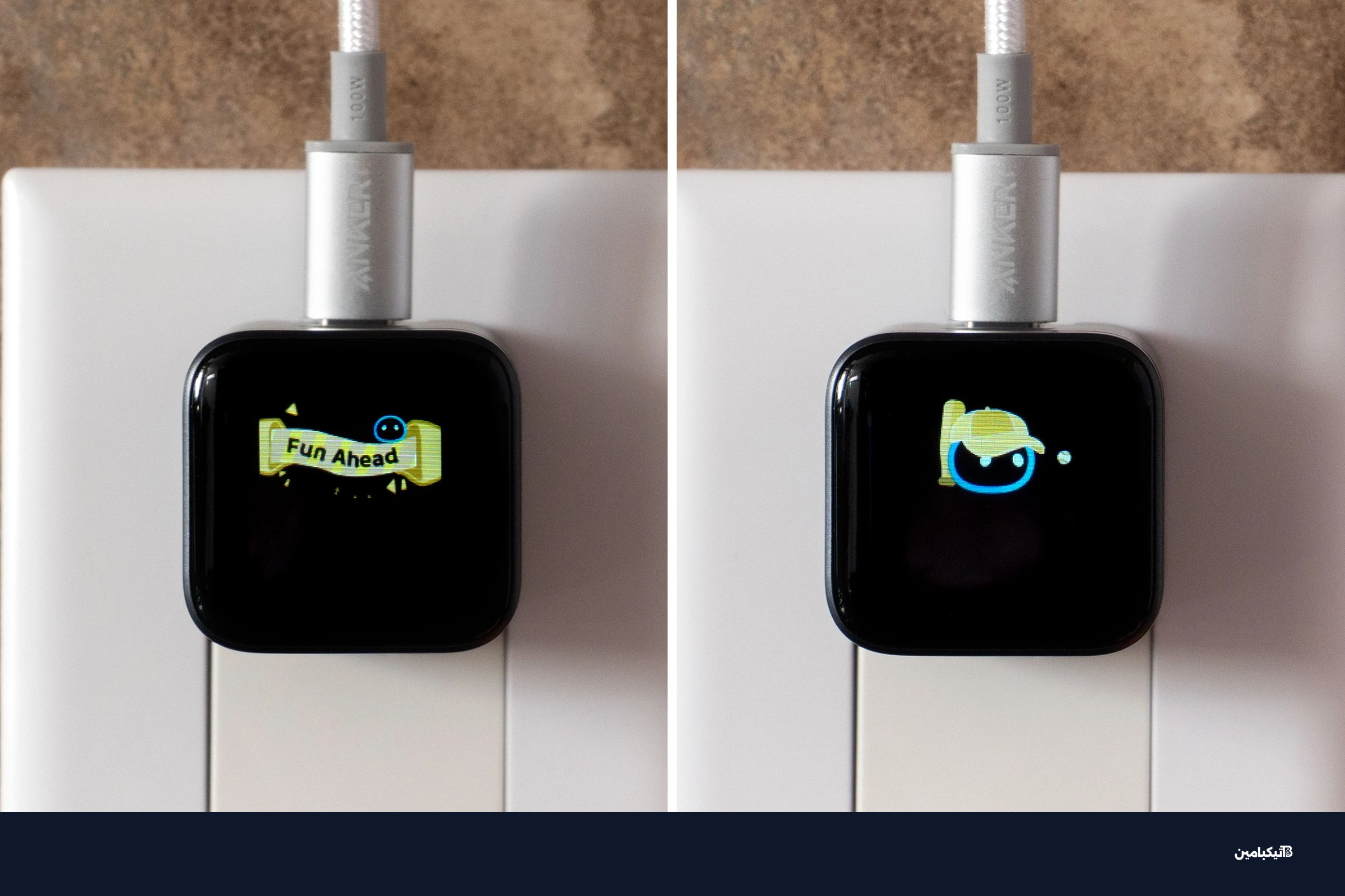 تضيف الشخصية الكرتونية المتحركة على الشاشة لمسة مرحة، حيث تتفاعل مع حالة الشحن، وتتحول أحياناً لتعرض رسائل طريفة، مما يجعل تجربة الشحن مع أنكر أكثر تميزاً واختلافاً عن الشواحن التقليدية.